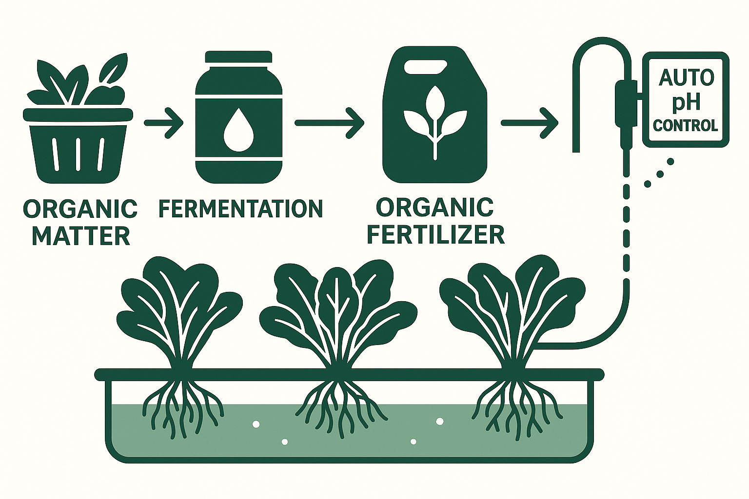 Organic residues—food scraps, grass clippings, spent crop leaves—are first converted into a nutrient-rich liquid by controlled anaerobic fermentation (sometimes called “bio-fertilizer brewing”). The fermented broth is then filtered and dosed into the recirculating water loop, where a thriving community of beneficial microbes continues to mineralize the nutrients so plant roots can take them up. Because the solution contains a complex mix of organic molecules, the usual hydroponic metric of electrical conductivity (EC) is an unreliable guide. Instead, bioponic systems rely on sensors such as pH (to track microbial activity and nutrient availability), dissolved oxygen (to keep roots and microbes healthy), oxidation-reduction potential (ORP, to spot anaerobic conditions), and sometimes nitrate or ammonium probes. Automated dosing and aeration are triggered when these sensors drift from their target ranges, ensuring plants receive just-in-time nutrition while the water stays balanced, clear, and highly water-efficient—without leaching or wasting precious nutrients.
